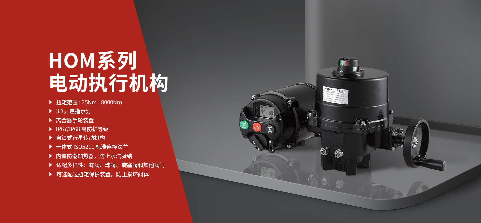 HEM系列可根據(jù)用戶需求生產(chǎn)多種型號(hào),如基礎(chǔ)、智能、總線、智能拆分等形式,安全、穩(wěn)定、可靠,滿足各領(lǐng)域不同應(yīng)用場(chǎng)景<p>HEM系列多回轉(zhuǎn)電動(dòng)執(zhí)行機(jī)構(gòu)不僅可用于調(diào)節(jié)閥、排氣閥、截止閥等直行程閥,還可用于角行程閥,如安裝一個(gè)半回轉(zhuǎn)蝸輪蝸桿傳動(dòng)箱后,再安裝terfly閥、球閥和旋塞閥HEM系列直接輸出扭矩范圍為100N.m-3000N.m,輸出轉(zhuǎn)速范圍為18rpm-144rpm,根據(jù)不同的轉(zhuǎn)速和不同的速比,配合電動(dòng)專用蝸輪箱可以轉(zhuǎn)換成越來(lái)越大的···